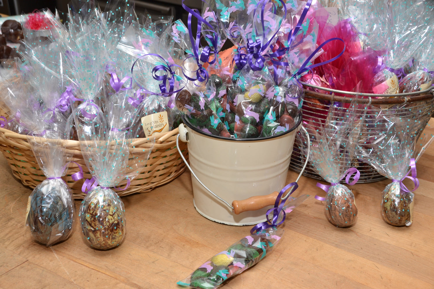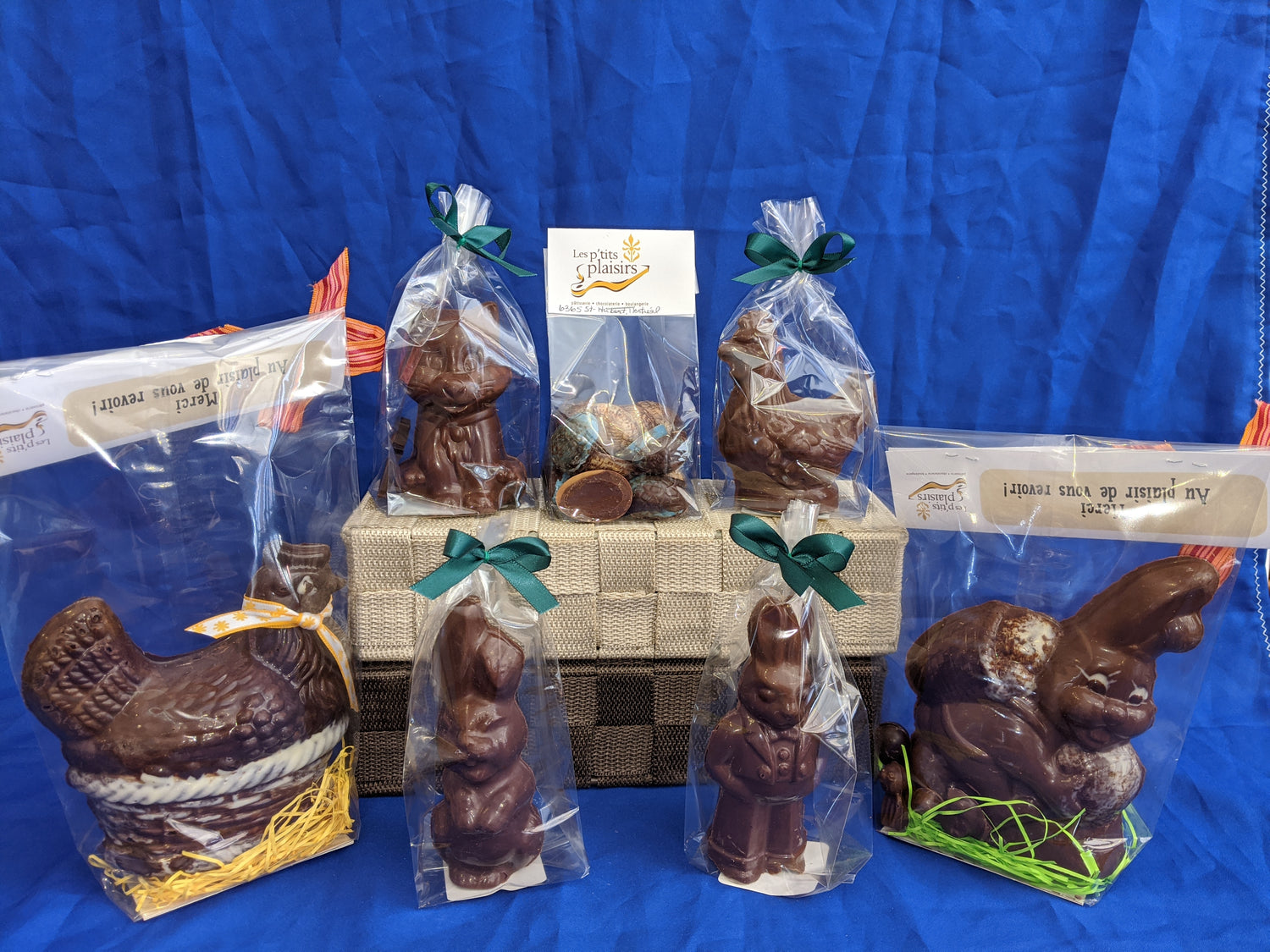 Pour célébrer cette venue, chassez les œufs et faîtes le bonheur des petits et des grands. Nous vous offrons, en chocolat noir, lait ou blanc, des œufs surprises pour les plus jeunes ou garnis de confiseries pour les grands. Nous avons aussi des moulages de multiples formats, des personnages ainsi que des créations uniques en chocolat.
